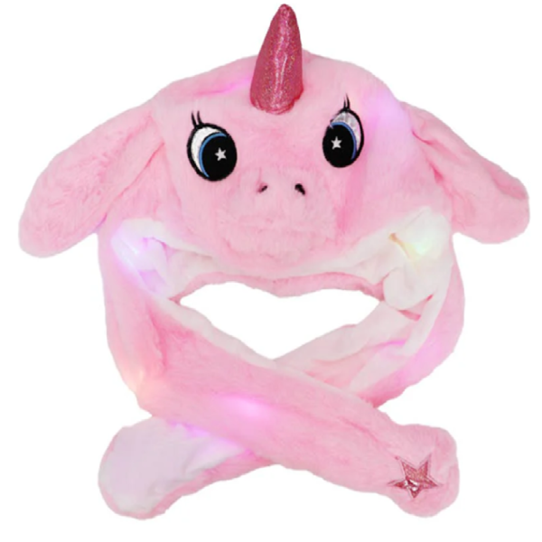 Aranyos színes egyszarvú sapka – bolyhos plüss téli női beanie szarvval, fülekkel – rózsaszín (BBJ)