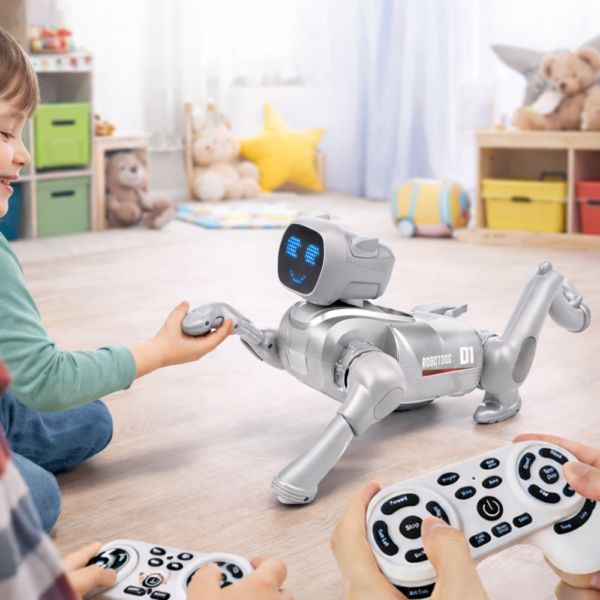 A 2.4GHz távirányítással és Bluetooth alkalmazásvezérléssel működő AI robot kutya fejlett mozgásrendszerrel, látványos LED arckifejezésekkel és rengeteg szórakoztató funkcióval érkezik.