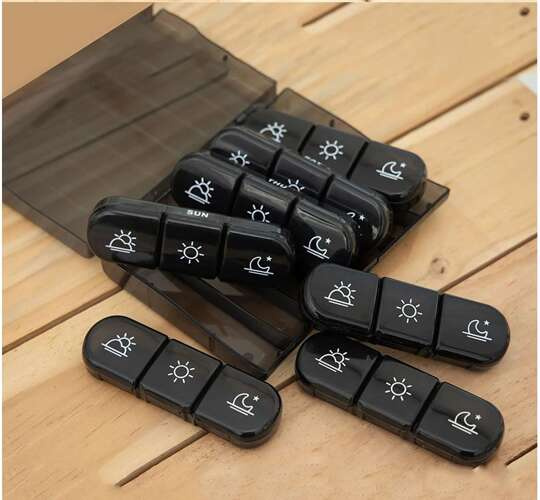 Hét napos gyógyszeradagoló, 7 tárolóval, három részre osztva (WNDR24287)