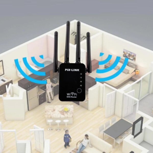 Pix-Link vezeték nélküli hálózati jelismétlő – WiFi router WPA-PSK / WPA2-PSK titkosítási biztonsággal (BBV)